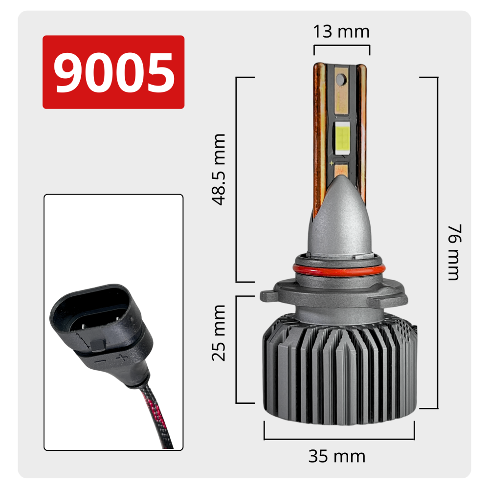 ليد مقاس 9005/9006/9012 بقوة 10000LM 100W بلون 5500K ابيض شمسي مناسب للواطي والعالي مع ضمان سنة